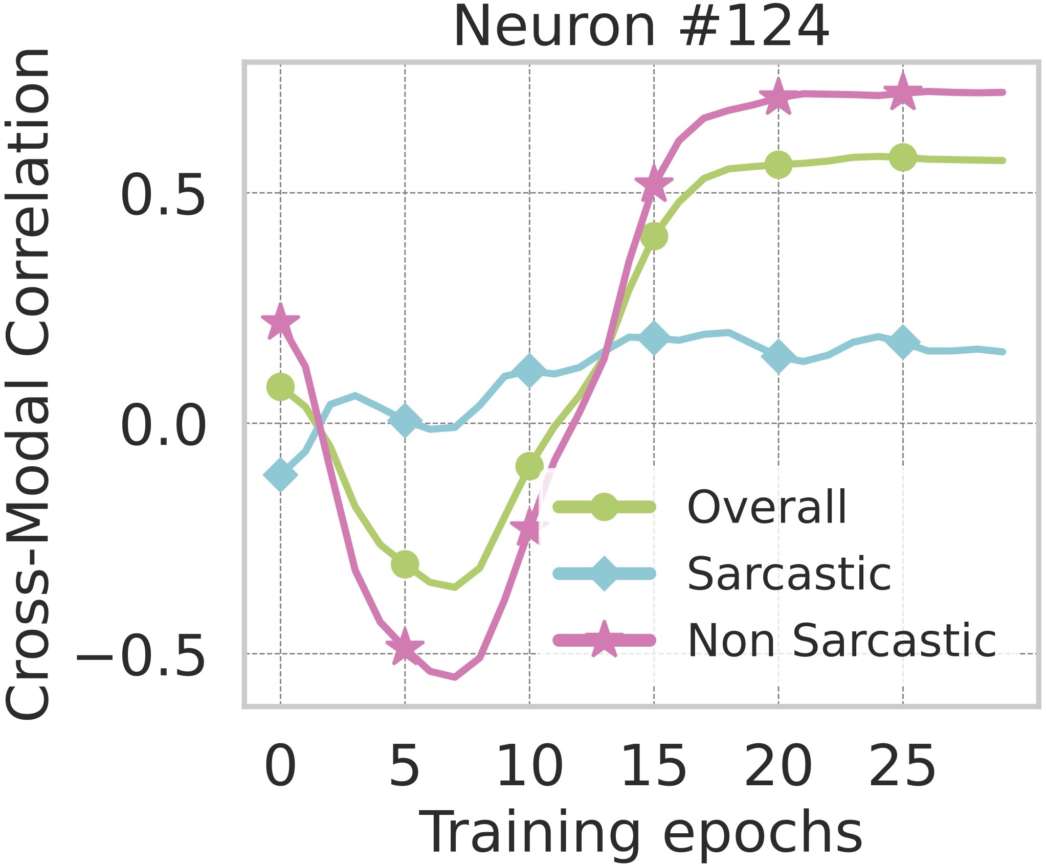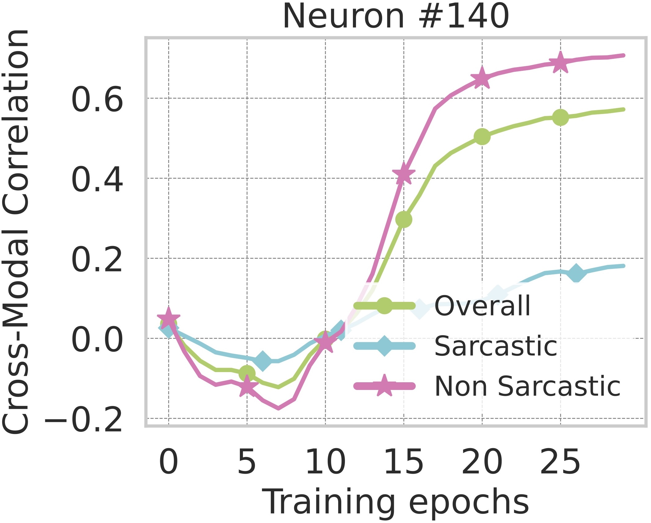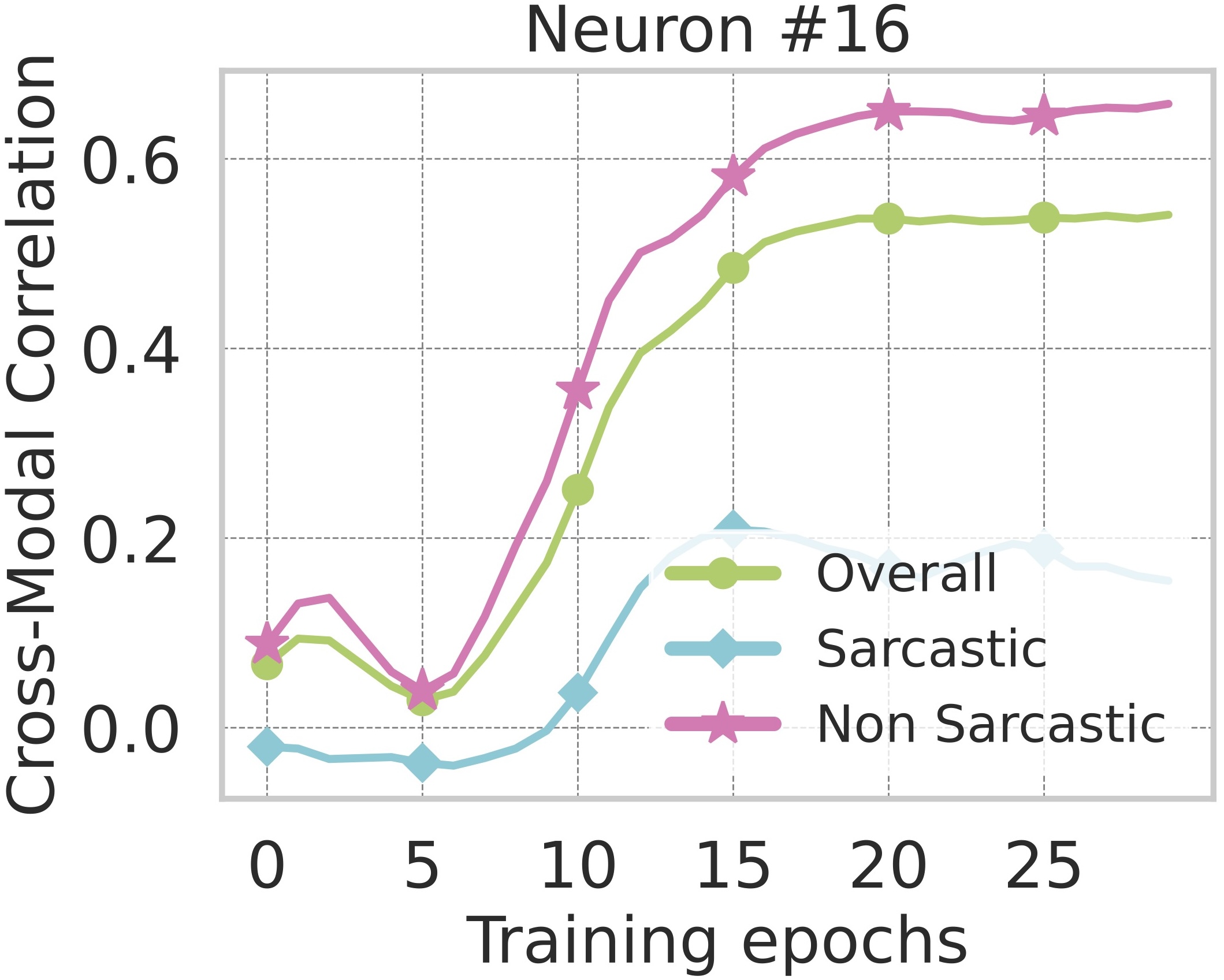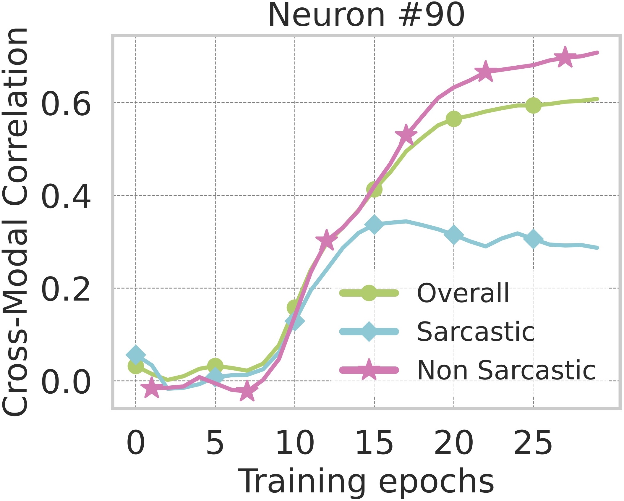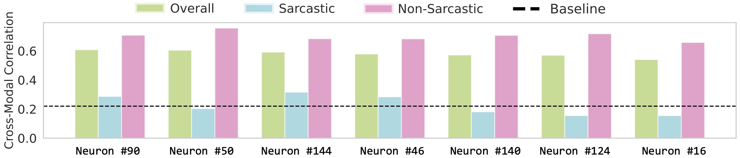 Most neurons exhibit strong cross-modal correlation and specifically higher alignment for non-sarcastic samples,